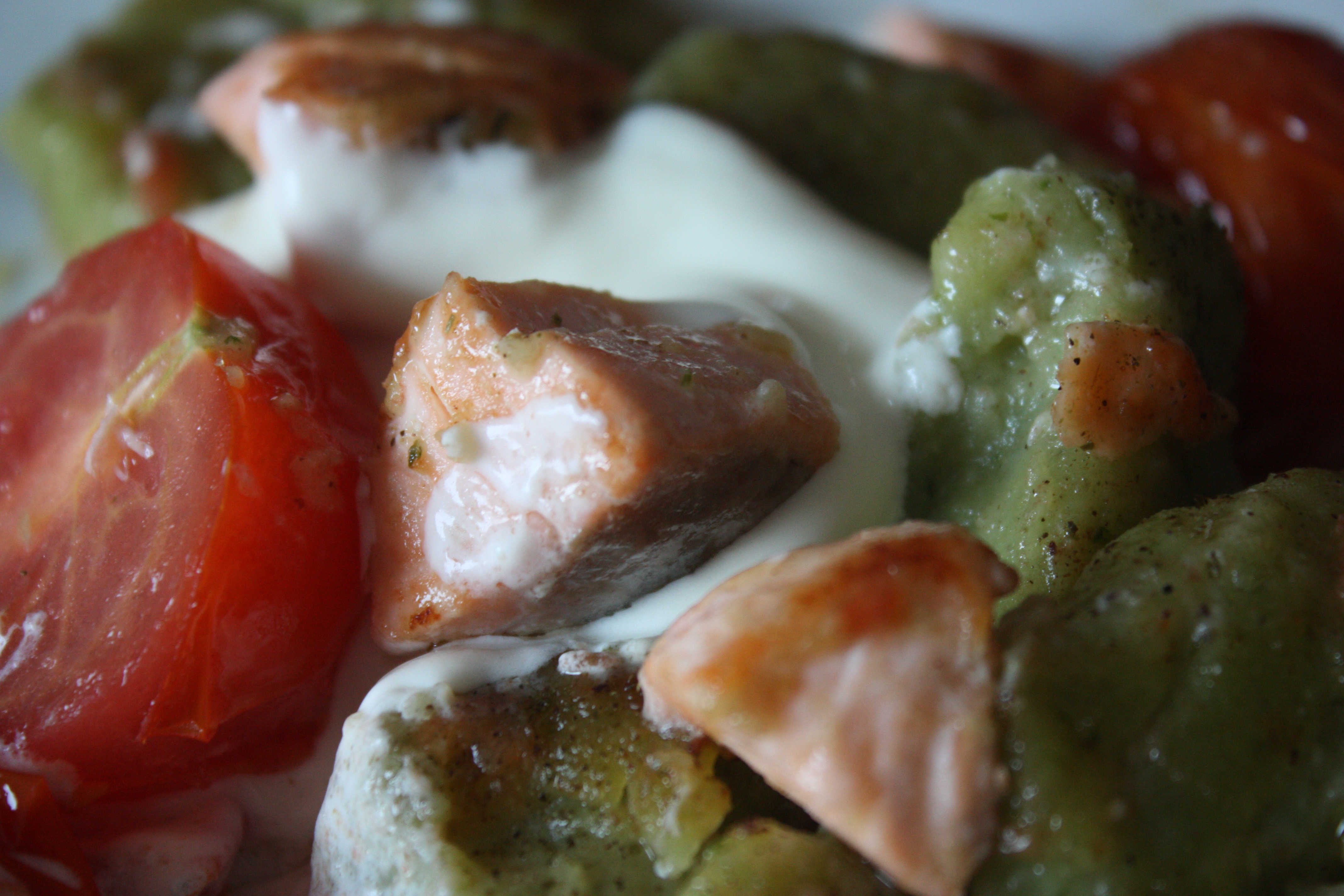 bei mir kombiniert mit Lachs, Cocktailtomaten und einem Klecks Creme fraiche,
